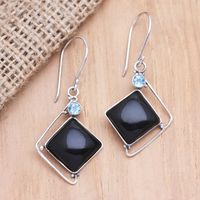 Handmade Blue Topaz Buffalo Horn Silver Dangle Earrings 'Ice Storm' Item ID: 2671746634