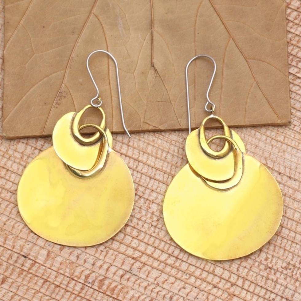 Handmade Brass Dangle Earrings 'Shimmering Fan' Item ID: 2671747669