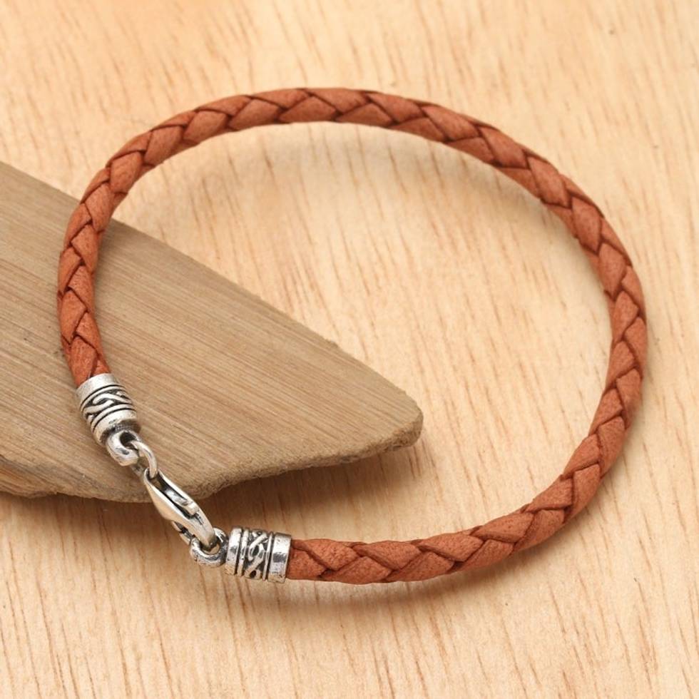 Handmade Brown Leather and Sterling Silver Braided Bracelet 'Braided Dream in Brown' Item ID: 2671670061