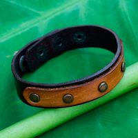Handmade Brown Leather Bracelet with Brass Studs 'Exotic Rustic' Item ID: 2671801800