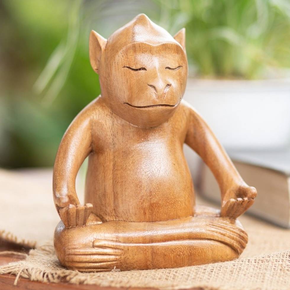 Handmade Brown Suar Wood Monkey Statuette from Bali 'Joyous Master' Item ID: 2671762955