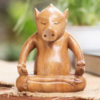 Handmade Brown Suar Wood Pig Statuette from Bali 'Gentle Master' Item ID: 2671763193