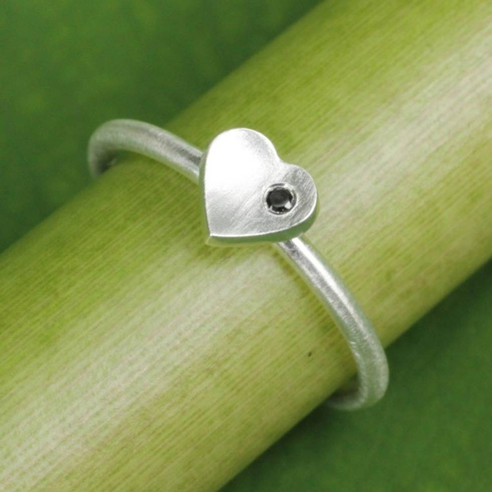 Handmade Brushed Sterling Silver and Onyx Heart Ring 'The Heart' Item ID: 2671802492
