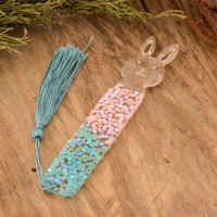 Handmade Bunny-Themed Resin Bookmark with Turquoise Tassel 'Bunny Legends' Item ID: 2671768908