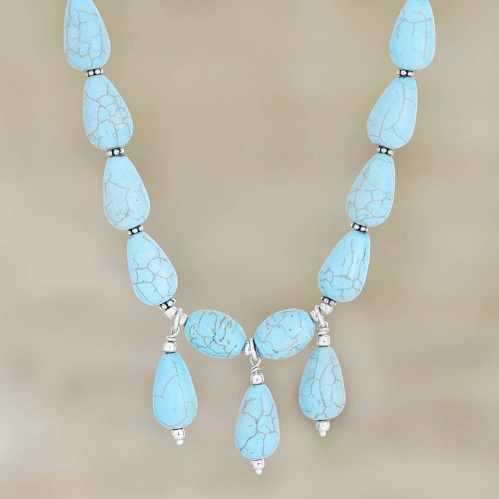 Handmade Calcite Beaded Pendant Necklace from India 'Blue Fountain' Item ID: 2671789627