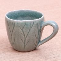 Handmade Celadon Ceramic Mug from Thailand 'Lotus Garden' Item ID: 2671799847