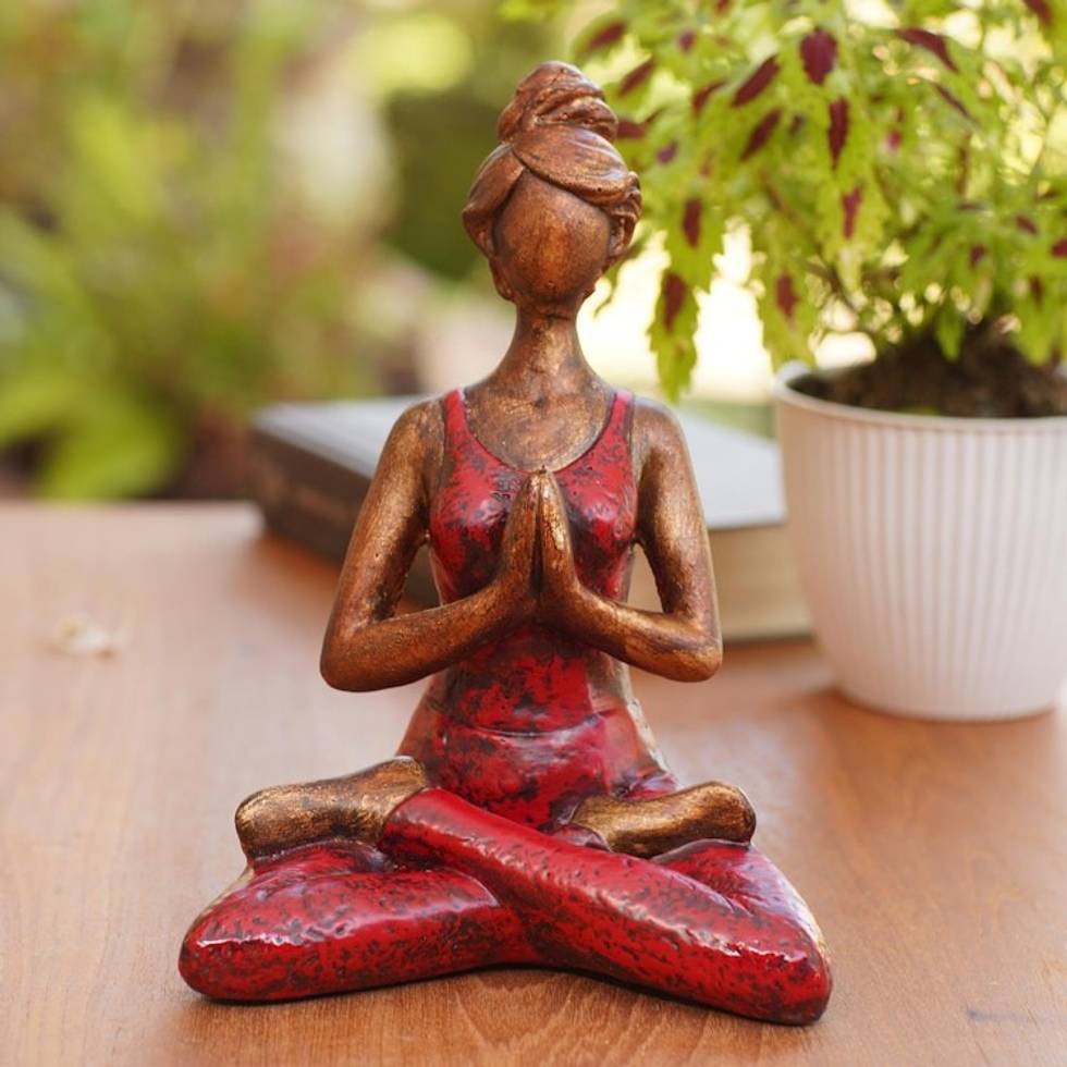 Handmade Cement Yoga Statuette from Java 'Asana Pose in Red' Item ID: 2671746840