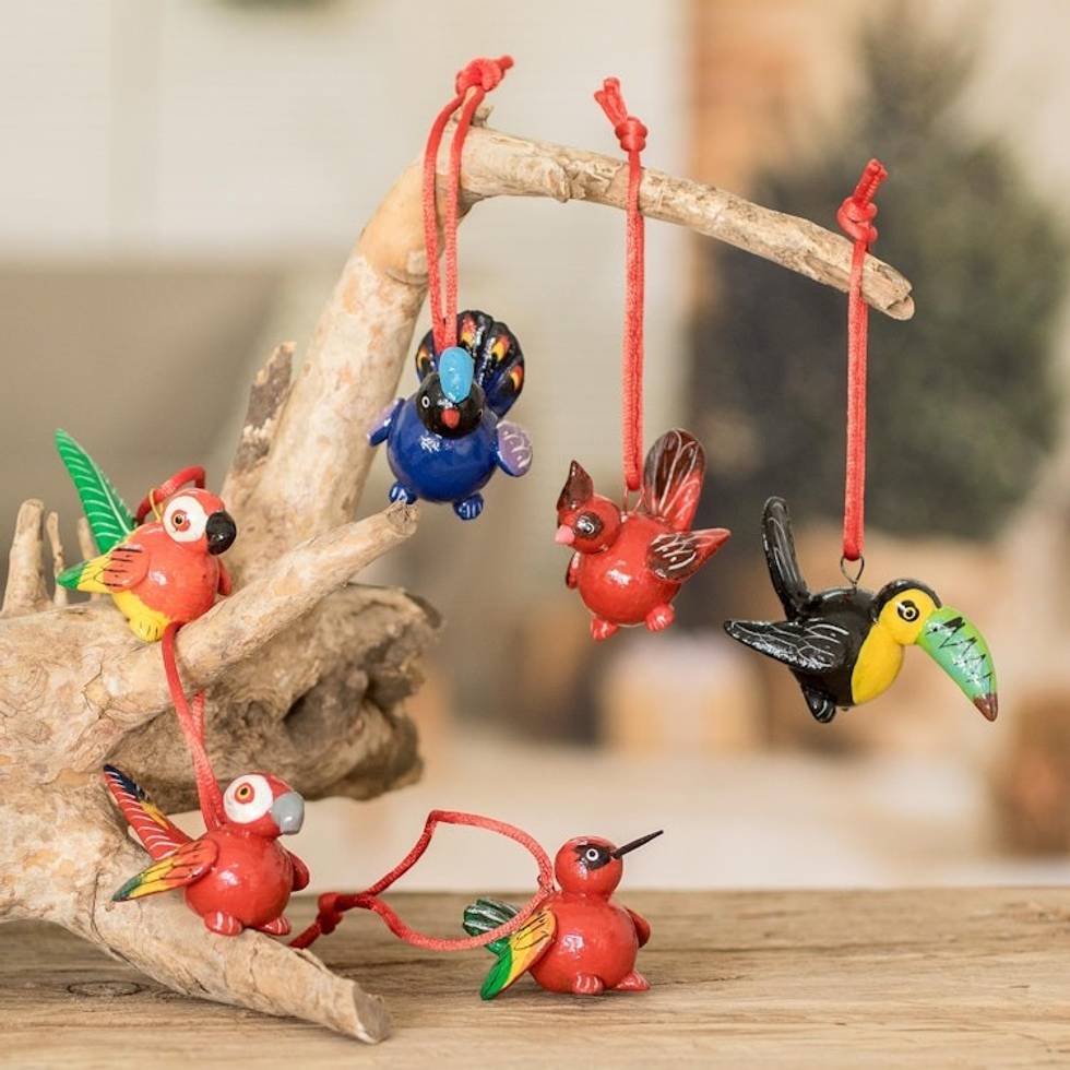 Handmade Ceramic Bird Christmas Ornaments Set of 6 'Tropical Birds' Item ID: 2669933884