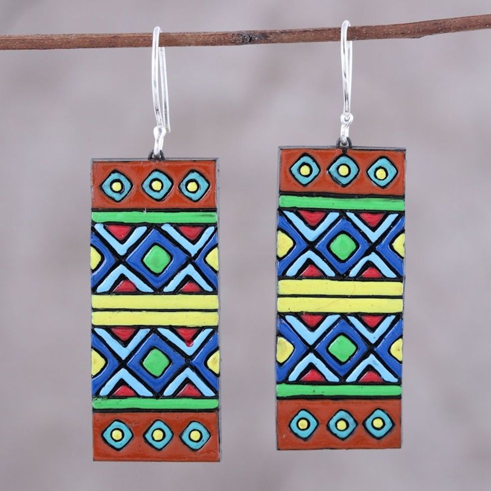 Bollywood is how they are described. I think of them as casual, happy earrings that go well with jeans and a plain shirt, allowing the pattern to dominate the entire look.