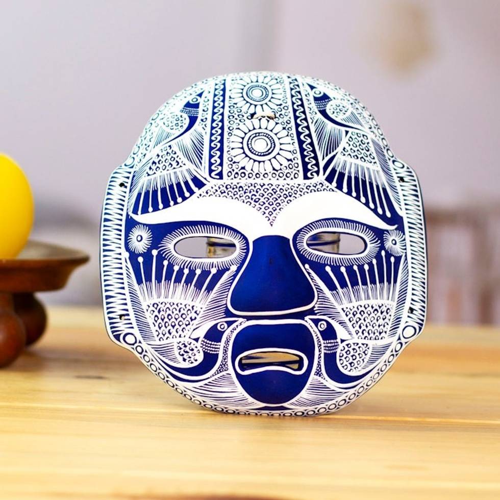 Handmade Ceramic Mexican Folk Art Mask 'Midnight Olmeca' Item ID: 2671808900