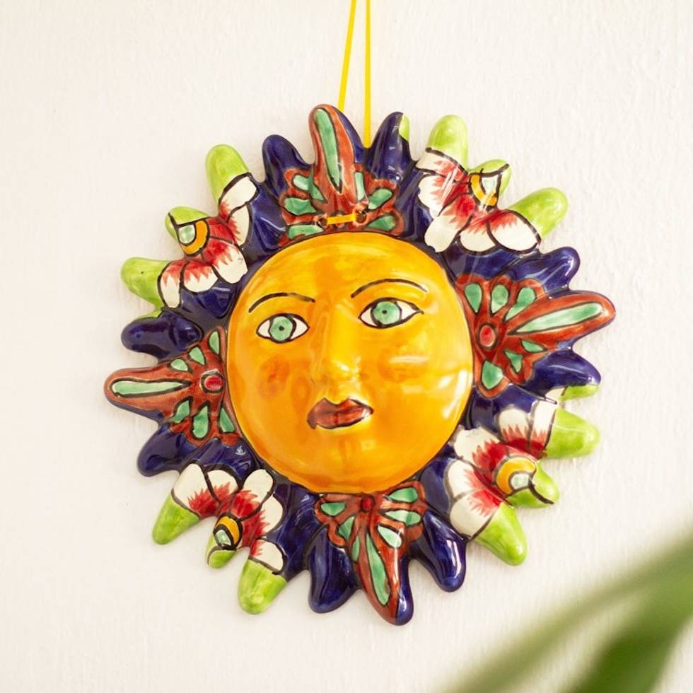 Handmade Ceramic Sun Wall Accent 'Floral Sun' Item ID: 2669897294