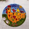 I love my chicken plate! It is fun and whimsical and makes me smile whenever I look at it hanging on the wall in my kitchen. Colorful and well-made. A unique piece of artwork.