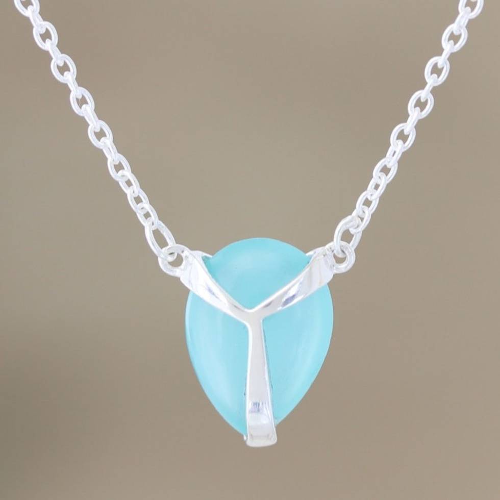Handmade Chalcedony and Sterling Silver Pendant Necklace 'Air Kiss in Aqua' Item ID: 2669924063
