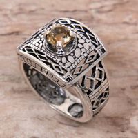 Handmade Citrine and Sterling Silver Cocktail Ring 'Bali Temple' Item ID: 2676666801