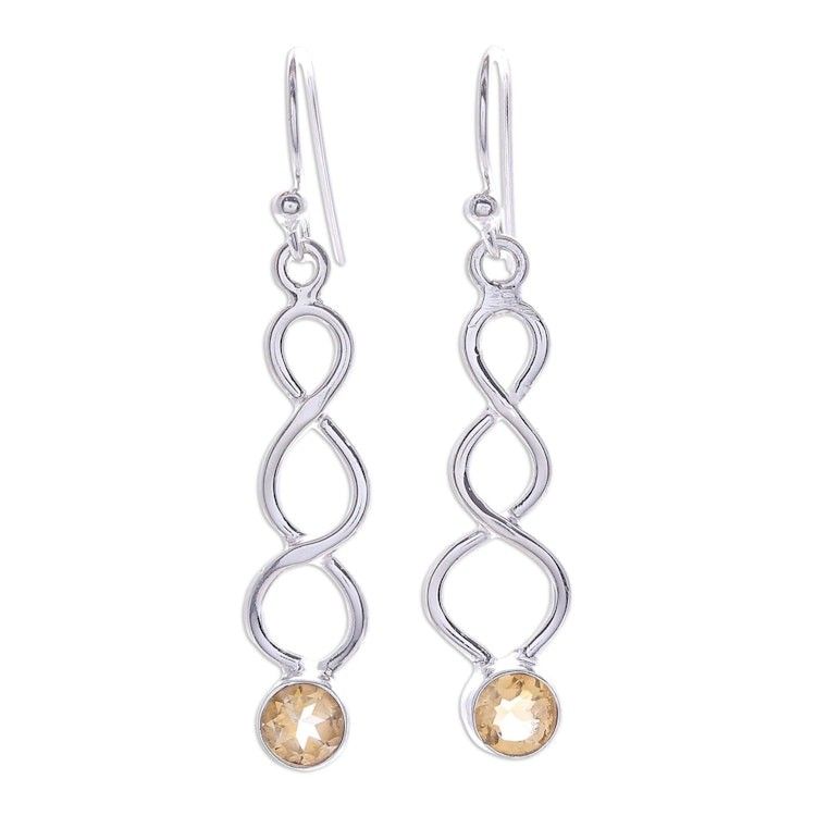 Handmade Citrine and Sterling Silver Dangle Earrings 'Champagne Surprise in Yellow' Item ID: 2671800287