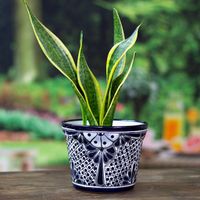 Handmade Classic Indigo-Toned Ceramic Flower Pot Medium 'Bewitched Nature' Item ID: 2671652020