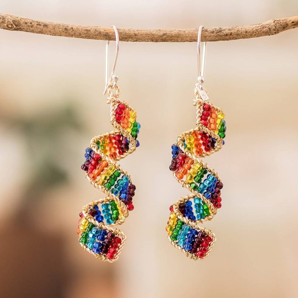 Handmade Colorful Crystal Glass Beaded Dangle Earrings 'Rainbow Fiesta' Item ID: 2671626400