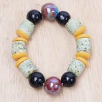 Handmade Colorful Recycled Glass Beaded Stretch Bracelet 'Ghana's Honor' Item ID: 2671804573