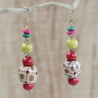 Handmade Colorful Wood Beaded Dangle Earrings from Ghana 'Joyful Sunrise' Item ID: 2671803677