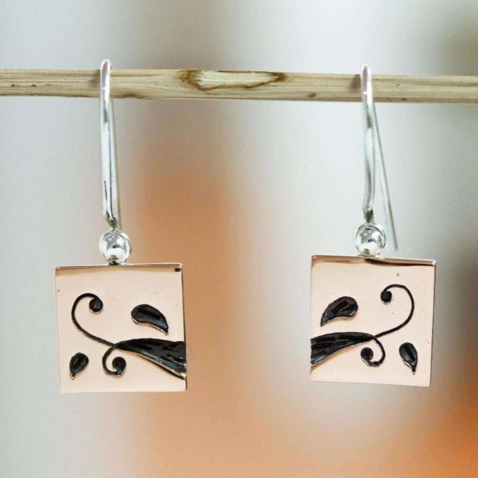 'Between Layers', sterling silver & copper dangle earrings are unique, look interesting, beautiful when worn. Will look terrific worn alone or can try with Guillermo Arregui's 'Taxco Mix' collar and bracelet and ring that stacks ( 2 silver with 1 copper). Well crafted. Good value. Eye-catching. Happy with purchase.