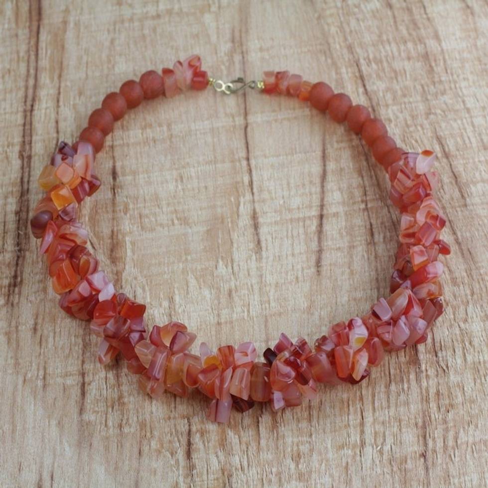 Handmade Coral Red Agate and Recycled Glass Beaded Necklace 'Coral Kiss' Item ID: 2671803820