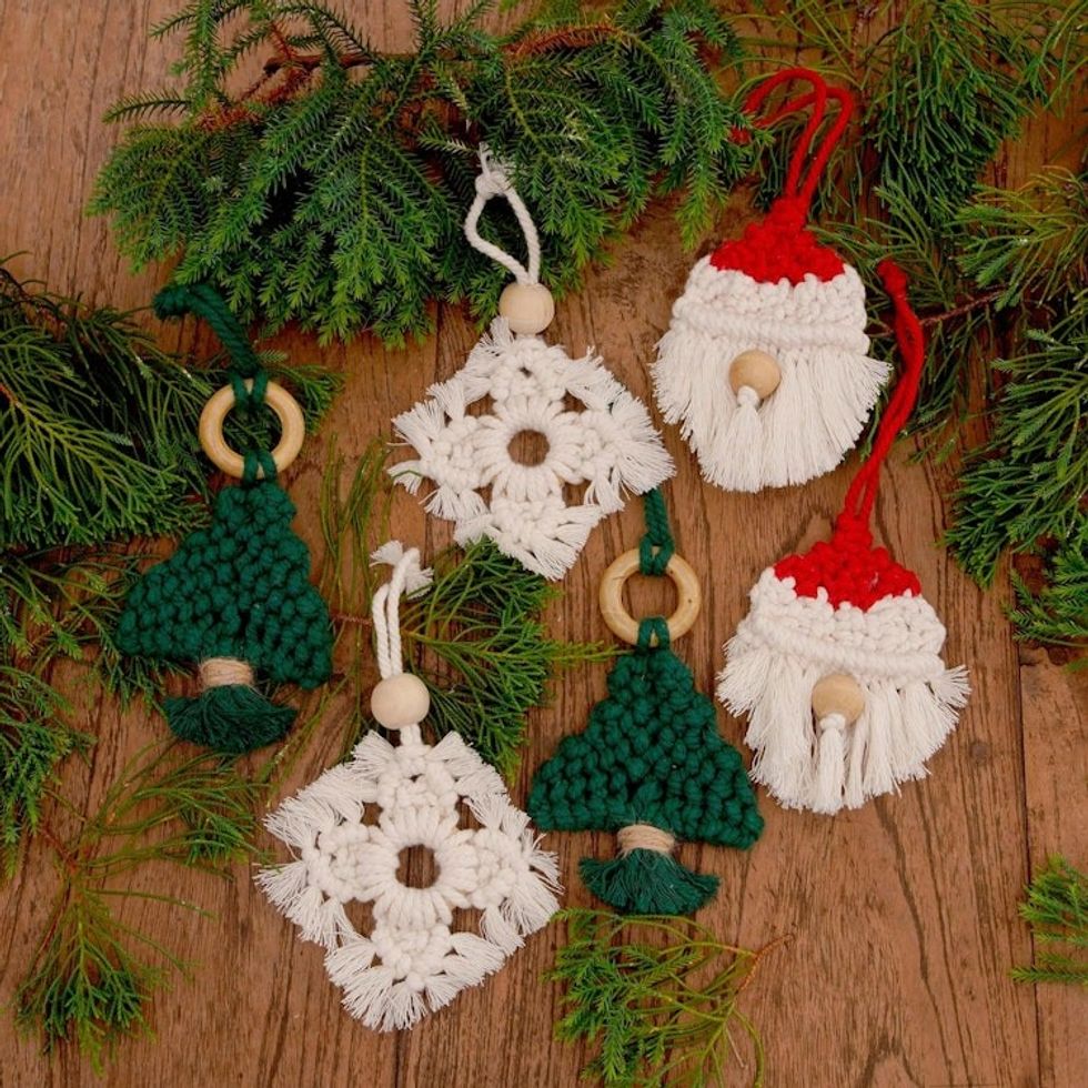 Handmade Cotton and Bamboo Holiday Ornaments Set of 6 'Christmas Celebration' Item ID: 2671747545