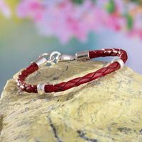 Handmade Crimson Leather Braided Bracelet with Silver 925 'Bold Crimson' Item ID: 2676641627