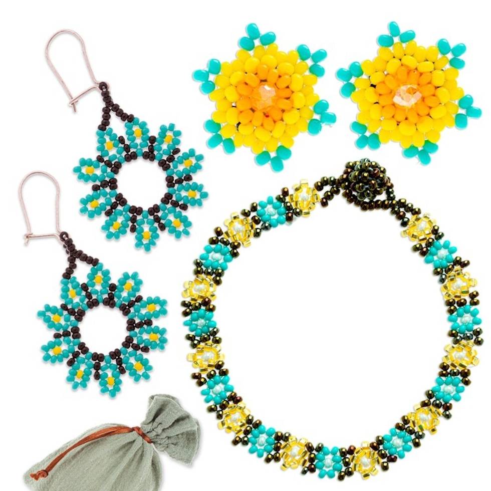 Handmade Crystal and Glass Beaded Jewelry Curated Gift Set 'Arcadian Flowers' Item ID: 2671807305