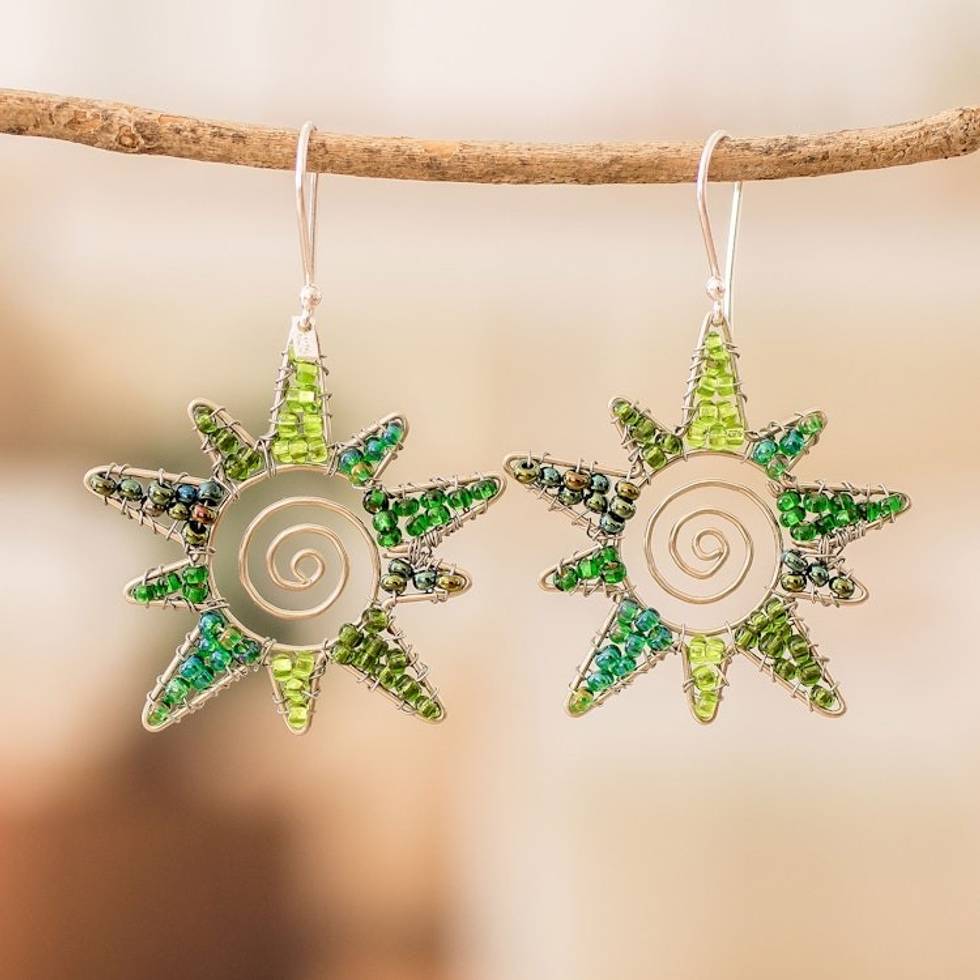 Handmade Crystal Glass Beaded Star Dangle Earrings 'Stellar Green' Item ID: 2669923551