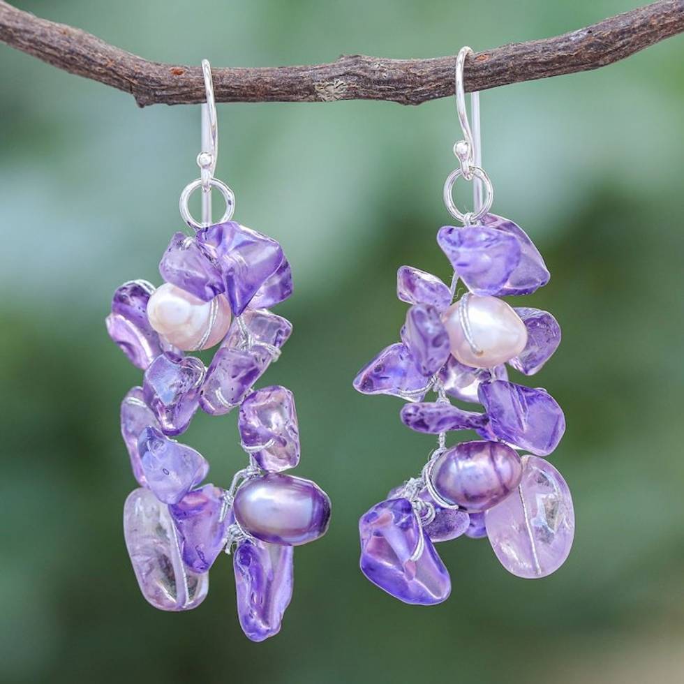 Handmade Cultured Pearl and Amethyst Dangle Earrings 'Lavender Ocean' Item ID: 2671640770
