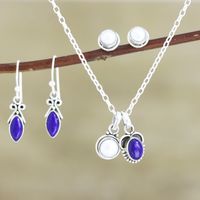 Handmade Cultured Pearl and Lapis Lazuli Jewelry Set 'Ocean Treasure' Item ID: 2669924894
