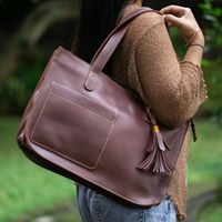 Handmade Dark Brown Leather Tote Shoulder Bag 'City Lines' Item ID: 2671733880