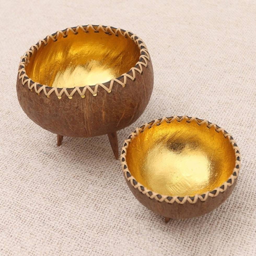 Handmade Decorative Coconut Shell Bowls Pair 'Gleaming Duo' Item ID: 2671746236