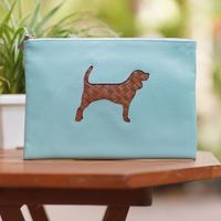 Handmade Dog-Themed Leather Clutch 'Dog's Life in Blue' Item ID: 2671613624