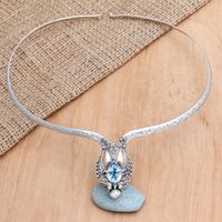 Handmade Dragon Motif Gold-Accent Blue Topaz Collar Necklace 'Basuki in Flight' Item ID: 2669919826