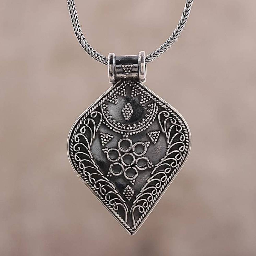 Handmade Drop-Shaped Sterling Silver Pendant Necklace 'Brilliant Drop' Item ID: 2676664507