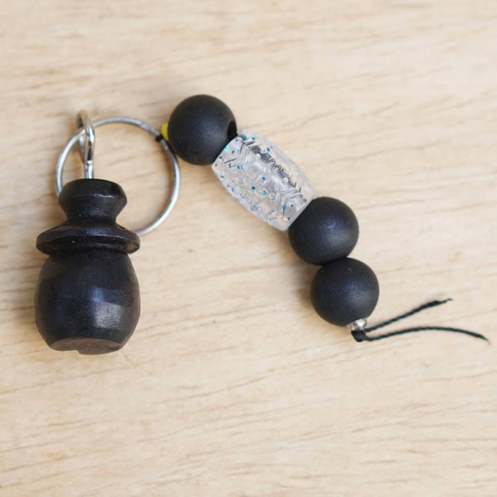 Handmade Ebony Hut Keychain with Recycled Glass Wood Beads 'Hut' Item ID: 2671805283