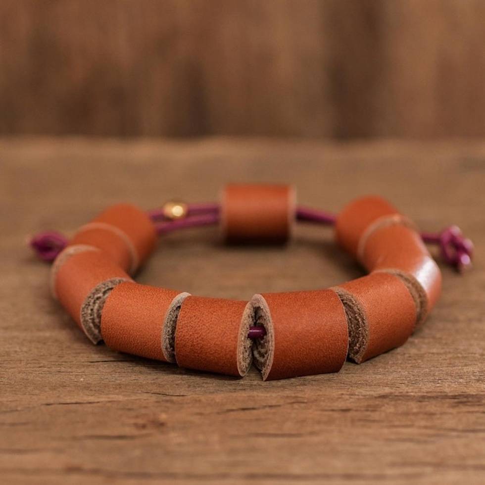 Handmade Eco Friendly Brown Leather Bracelet from Costa Rica 'Sepia Cylinders' Item ID: 2671772033