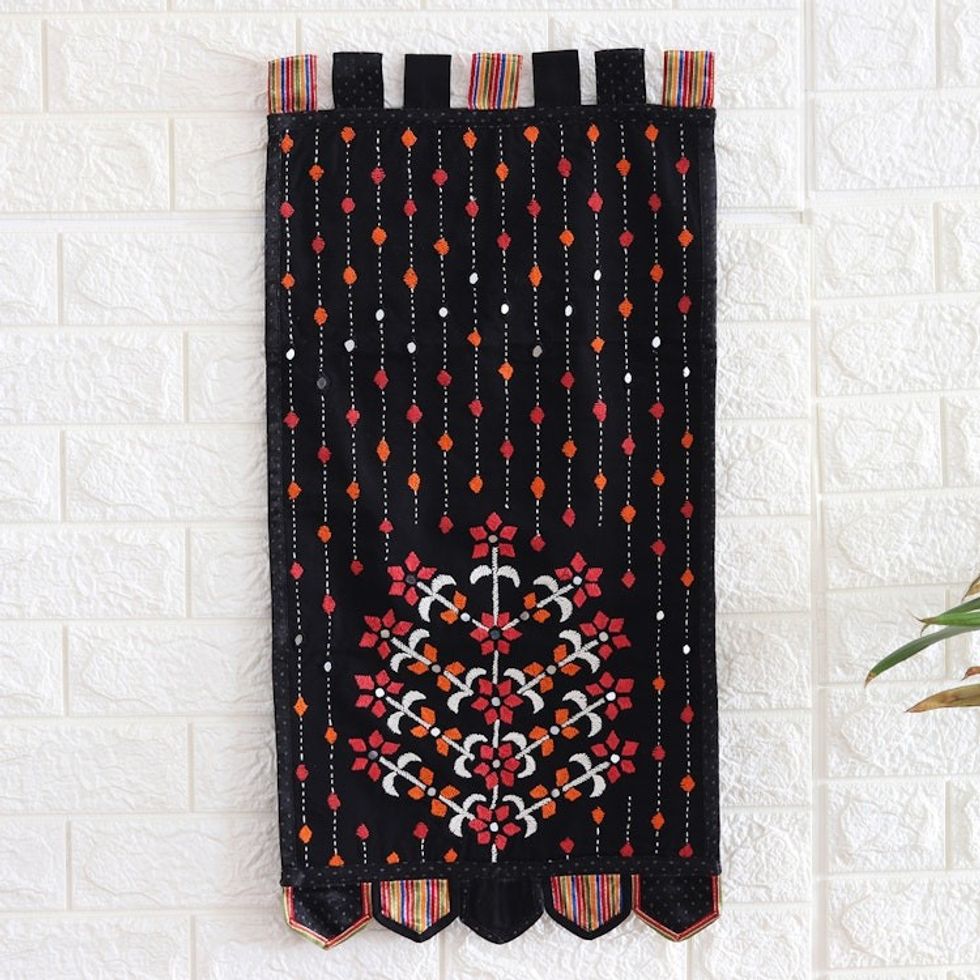 Handmade Embroidered Cotton Floral Wall Hanging from India 'Crimson Spring' Item ID: 2671786548