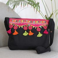 Handmade Embroidered Cotton Sling Bag 'Gujarat Beauty' Item ID: 2671789177