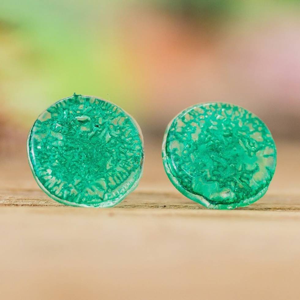 Handmade Emerald Recycled CD Stud Earrings with Silver Posts 'Emerald Translucent Illusion' Item ID: 2671769886