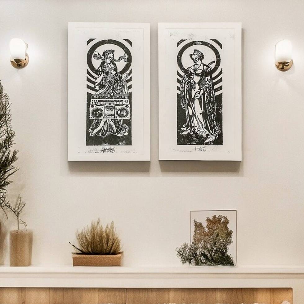 Handmade Expressionist Diptych Woodcut Print of The Reaper 'Boom Box' Item ID: 2671771489