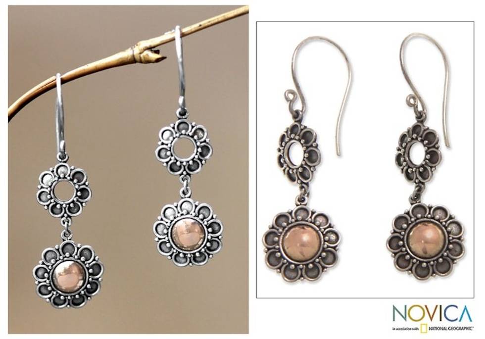 Handmade Floral 18k Gold and Silver Dangle Earrings 'Sunflowers' Item ID: 2671698681