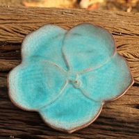 Handmade Floral Celadon Ceramic Salad Plate 'Turquoise Vanda' Item ID: 2671640831