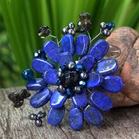 Handmade Floral Lapis Lazuli Brooch Pin 'Phuket Flowers' Item ID: 2671802973