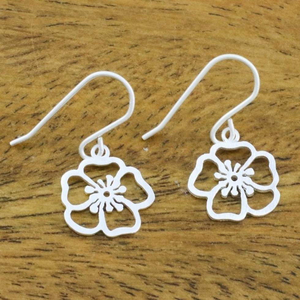 Handmade Floral Satin Blooms Sterling Silver Dangle Earrings 'Satin Blooms' Item ID: 2671800926