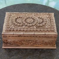 Handmade Floral Wood Jewelry Box from India 'Sunflower Ivy' Item ID: 2671794514