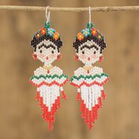Handmade Frida Kahlo Glass Bead Earrings from Guatemala 'Kahlo' Item ID: 2669923598