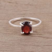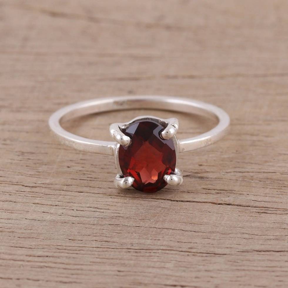 Handmade Garnet 925 Sterling Silver Solitaire Ring 'Glamorous Red' Item ID: 2671790946