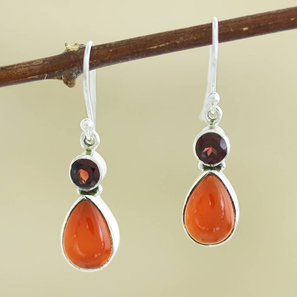 Handmade Garnet and Carnelian Gemstone Dangle Earrings 'Glorious Alliance' Item ID: 2669925135
